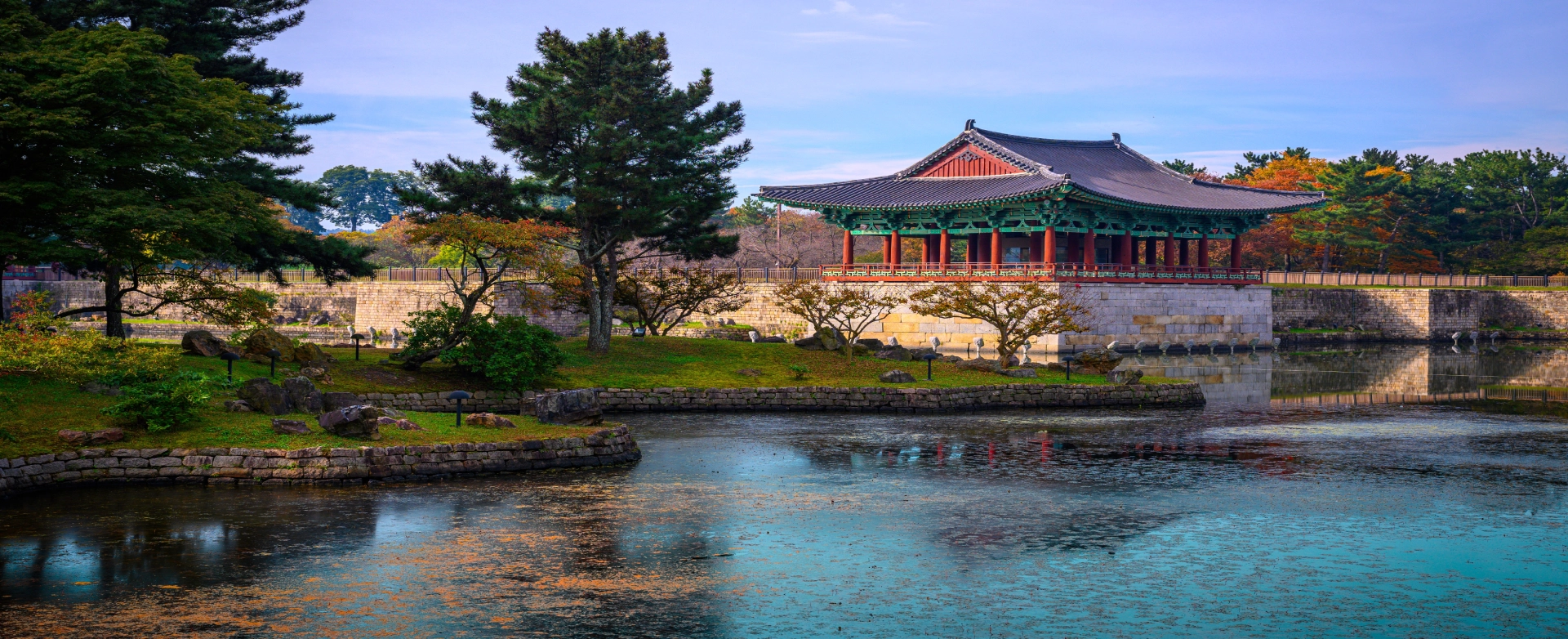Formerly known as Anapji this oval shaped artificial pond is a popular tourist attraction in Gyeongju.